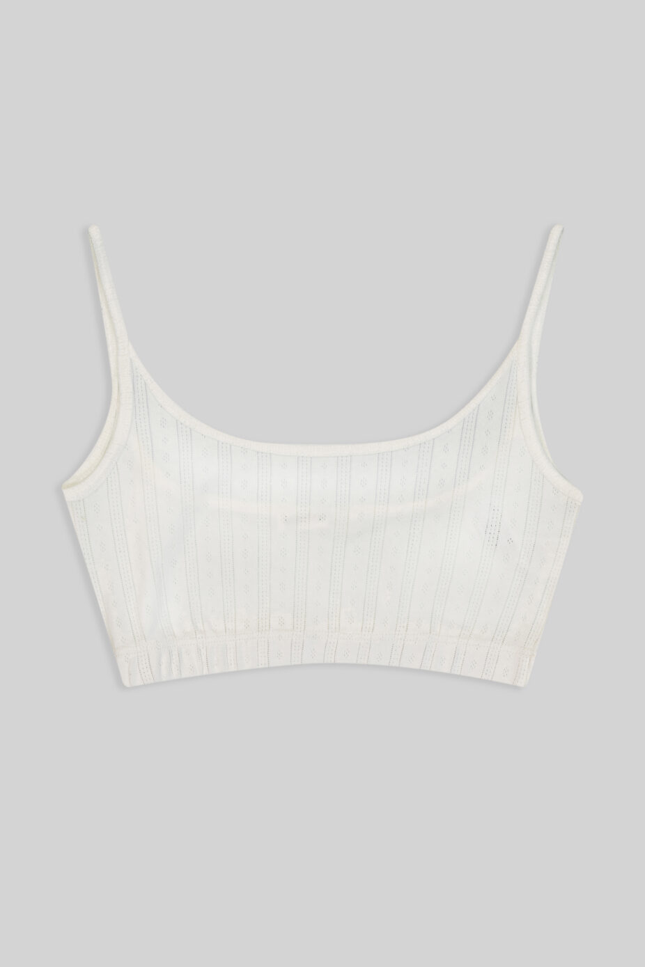 Pamuklu kadın büstiyer, ev giyiminin en rahat ve doğal parçalarından biridir. %100 pamuk kumaşı sayesinde nefes alır, cilde yumuşak bir dokunuş sunar ve gün boyu konfor sağlar. Pointel (delikli) desenli yapısı sayesinde klasik büstiyerlerden ayrılır. Daha estetik, ferah ve zarif bir görünüm sunar.