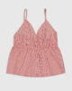 Kırmızı çizgileriyle deniz esintisini çağrıştıran bu pamuklu kadın çizgili askılı bluz, yavaş bir yaz gününü temsil eder. İster evde bir sabah kahvesi içerken, ister hafif bir yürüyüşte, ister plaj sonrası rahat bir stil ararken bu bluzla özgürce kombin yapabilirsiniz.