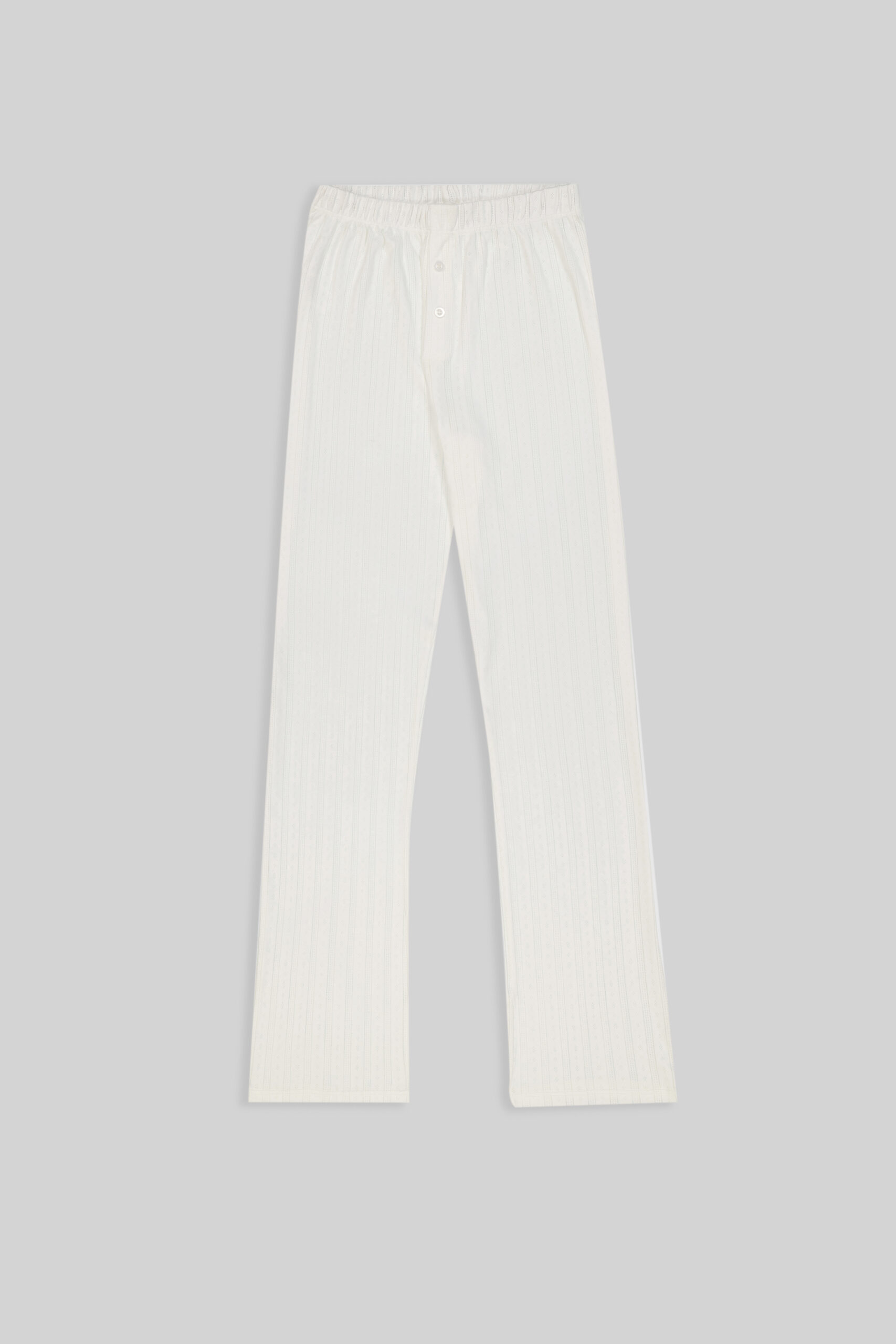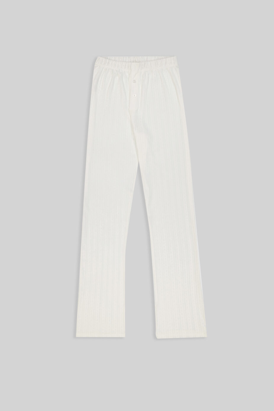 Pointel desenli pamuklu kadın uzun alt, ev giyiminde sade şıklığı ve doğal konforu bir araya getiriyor. %100 pamuklu kumaşı sayesinde gün boyu nefes alır. Yumuşak dokusu cilde nazikçe temas eder. Delikli pointel desenler ise hem estetik hem de hava geçirgenliği sunar.