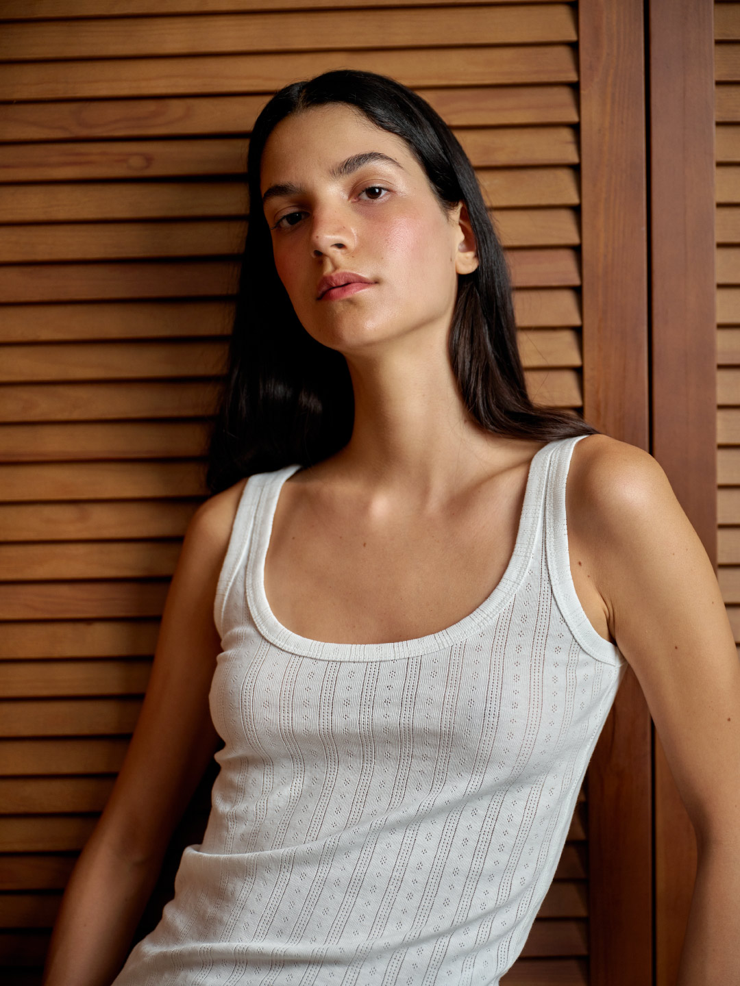 Pointel desenli pamuklu kadın atlet, bed and beyond’un “Modern Love” koleksiyonunda yer alır. Fazlalıklardan uzak, dinginliği ve doğallığı kutlar. Bu koleksiyonun ruhunu üzerinde taşımak isteyenler için tasarlandı.
